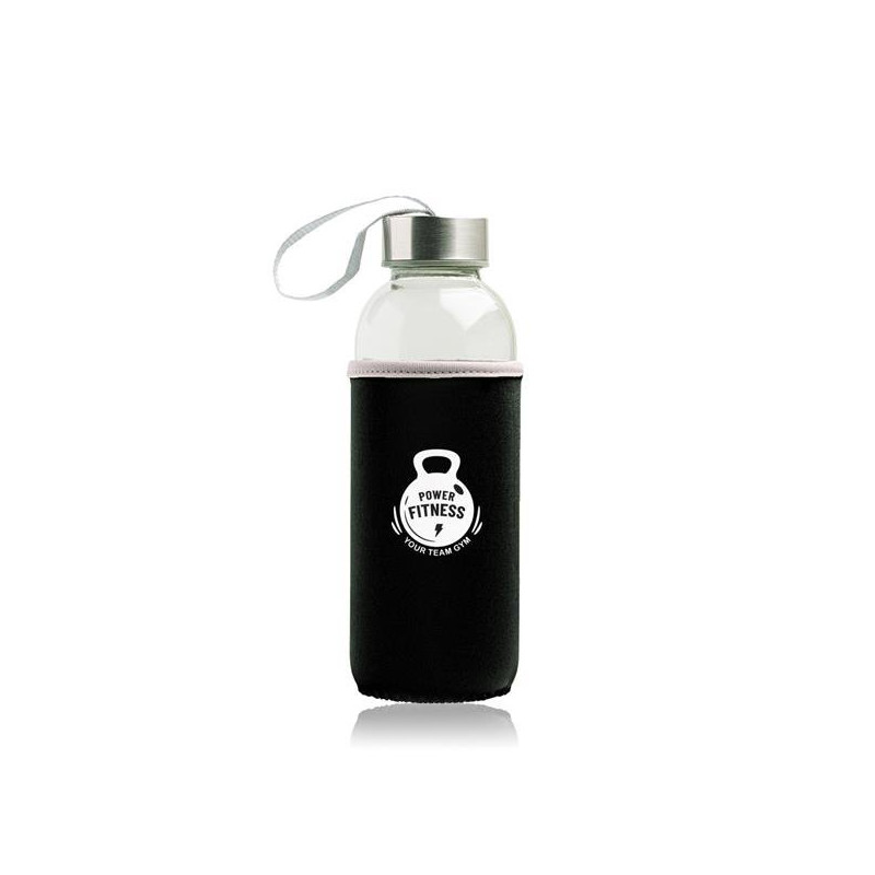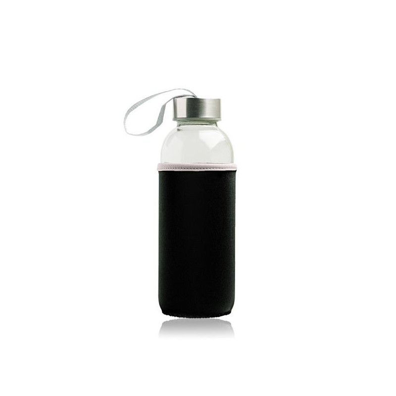 430ml glass bottle, with metal cap and neoprene sleeve. Non-reusable plastic bottles are increasingly out of date. With that in mind, and with the environment in mind, this glass bottle appears that you can use as many times as you want. With metal lid and tie. The neoprene sleeve is great for making this bottle a unique and special personalization.