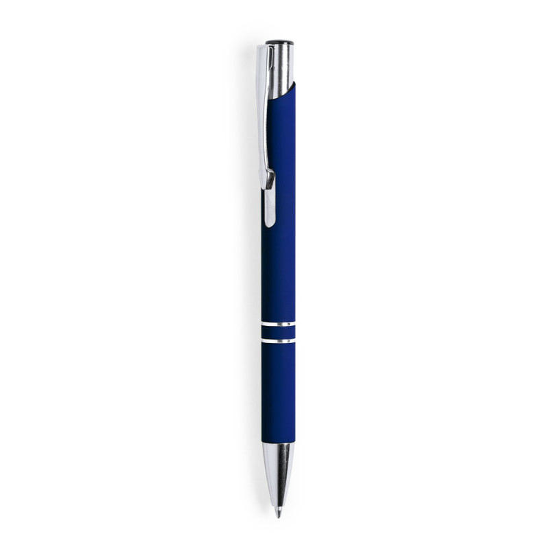 Ball pen with push-up mechanism in an elegant two color design. Aluminum body with rubber finishing, especially designed for laser printing, showing the logo in silver tone. Chromed tip, rings and metal clip. Available in a wide range of colors, with jumbo cartridge and blue ink refill.