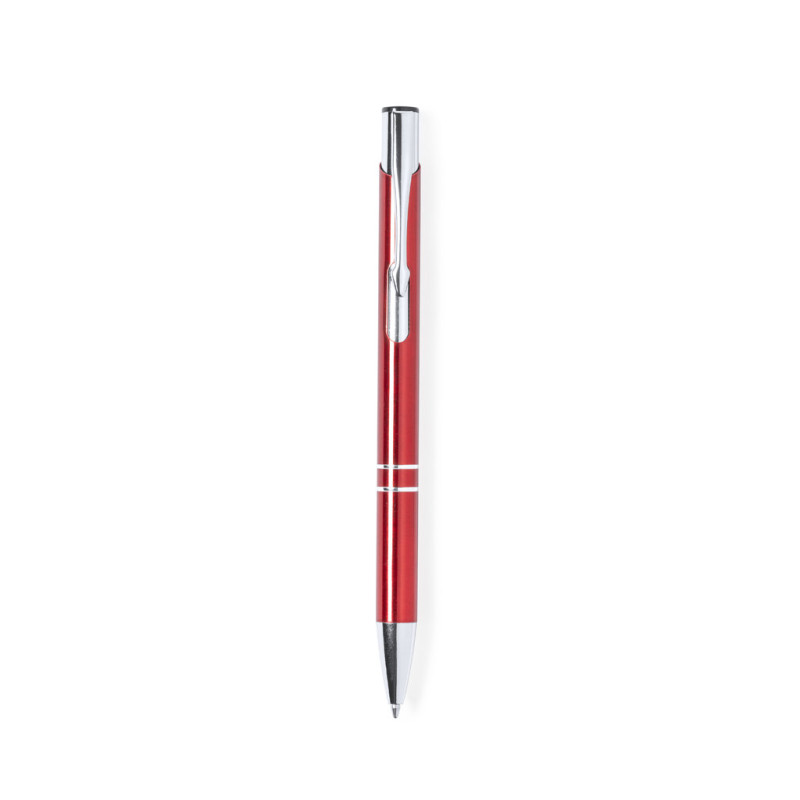 Eco-friendly ball pen made of recycled aluminium. Push-button mechanism, with barrel available in a wide range of metallic colours and chrome plated fittings. With metal clip and recycled aluminium logo on the top of the pen. Jumbo cartridge and blue ink.Recycled aluminum has its origin in the almost infinite reuse of one of the materials with the greatest recyclability potential, keeping the quality of the resulting product. This feature turns it into an eco-friendly material of recycled origin, easily recyclable. Besides, new material and resources can be obtained from treatment and waste processes, consuming less energy among others sustainable factors.GRS Certification (Global Recycled Standard), which guarantees the recycled origin of the material used to manufacture the product.