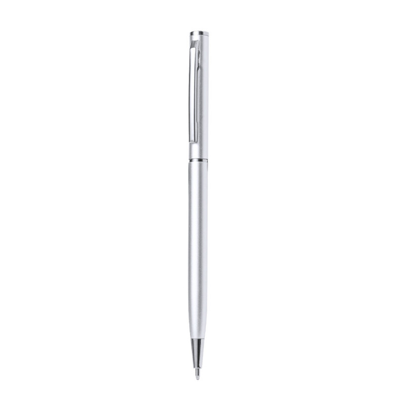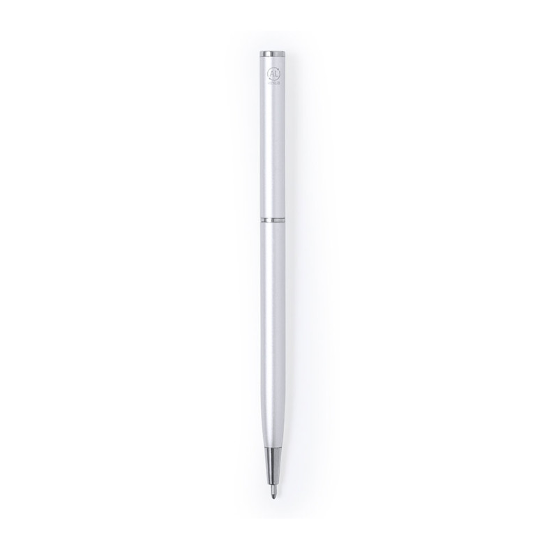 Ball pen with recycled Aluminium barrel. Metal clip and chrome plated fittings, with swivel mechanism and blue ink. With recycled Aluminium logo. Recycled Aluminium is a material with almost infinite recycling possibilities, keeping its original properties and consuming less energy during this process.GRS Certification (Global Recycled Standard), which guarantees the recycled origin of the material used to manufacture the product.