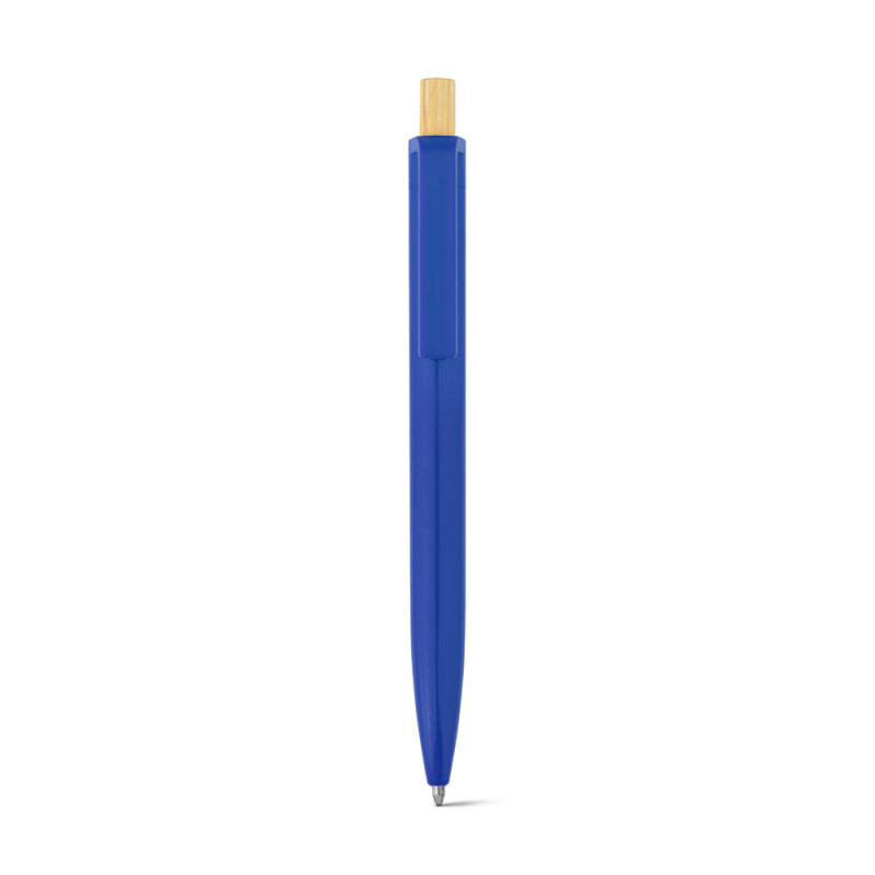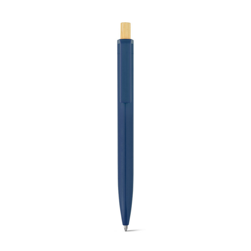 Recycled ABS (100% rABS) ballpoint pen with bamboo button. Blue ink. As the product is made from natural materials, the colour and the printing result may vary between products. ø11 x 134 mm