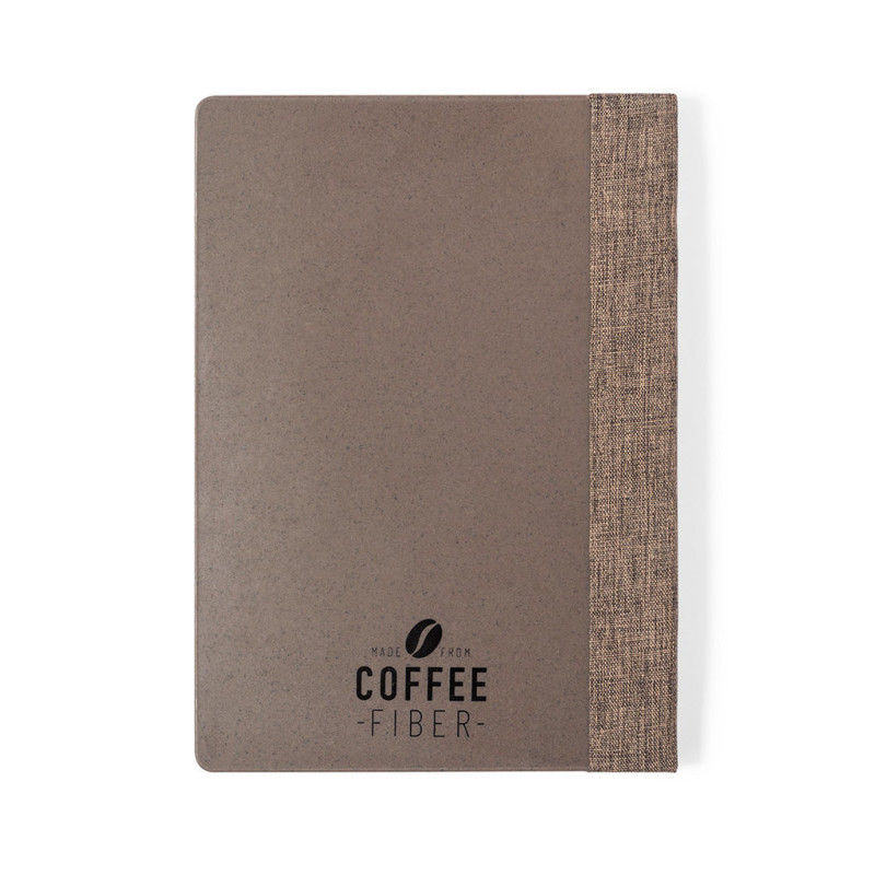 Notepad in nature line. With rigid covers made of coffee fiber, made from the waste produced in the production of coffee. A sustainable alternative that favors the reduction of plastic use, saving energy in the manufacturing process and thus promoting the care of the environment. Inside with 100 sheets of single-stripe layout and distinctive coffee fiber on the back cover.