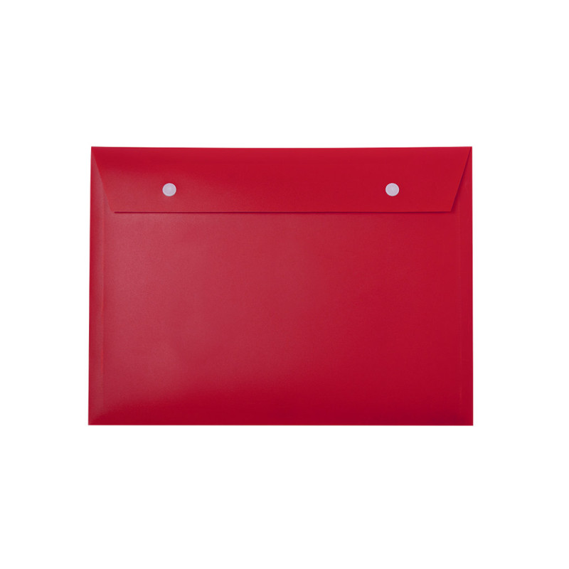 Practical document holder made of recycled PP, with a main compartment with flap and button closures in white.Recycled PP is a recycled and highly recyclable plastic, known for its great strength and suitable for multiple applications. With Food Grade certification, ensuring safety when food comes into contact with the material used to make the product.