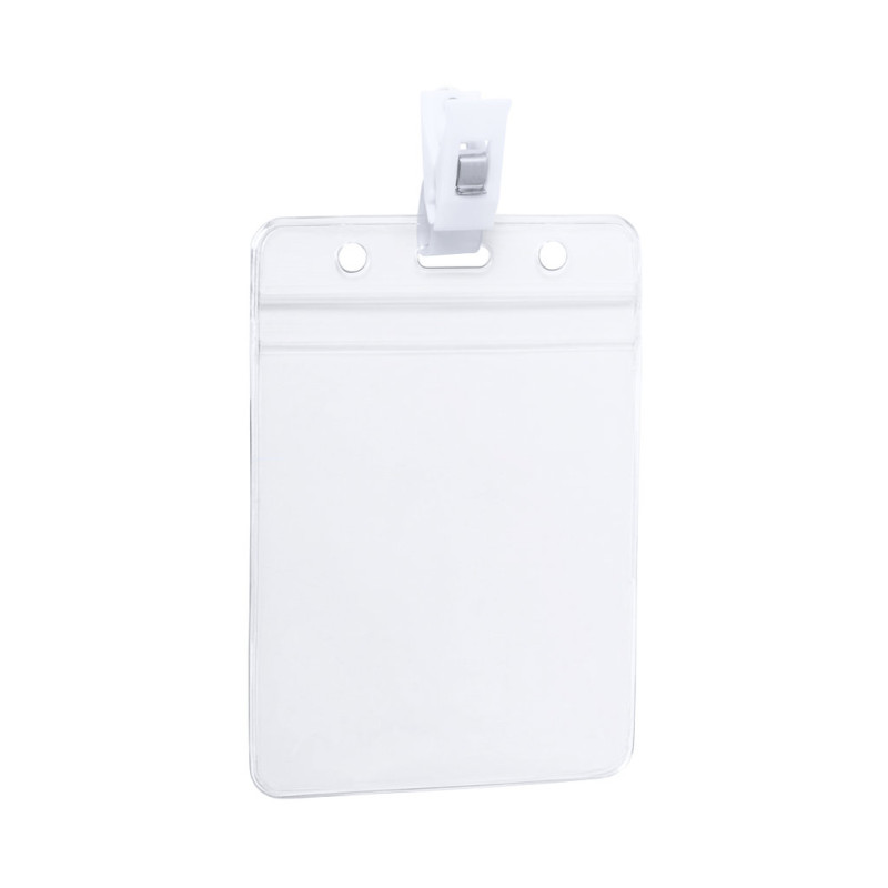 Name tag embossed in PVC with fixing clip in white. Available in horizontal and vertical design.
