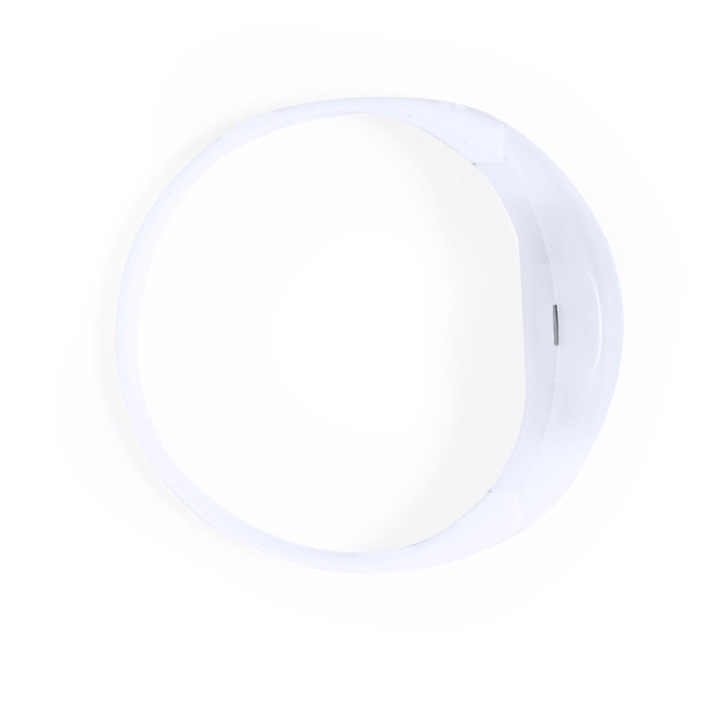 Cool bracelet with LED lights. In soft silicone and with 2 coloured LED lights inside, powered by a button cell battery (included). With a hidden sound-sensitive switch that automatically changes the colour of the lights to the rhythm of the music. Individually packaged in a Recycled paper bag.