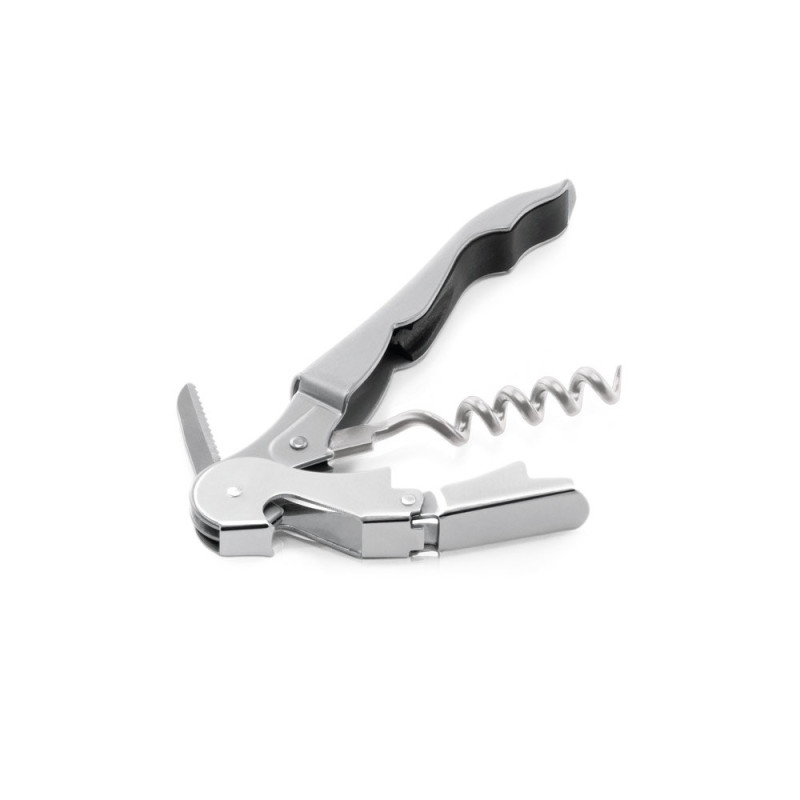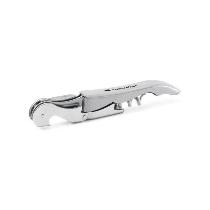 Metal corkscrew with bottle opener, sommelier knife and stainless steel spiral. 121 x 20 x 12 mm