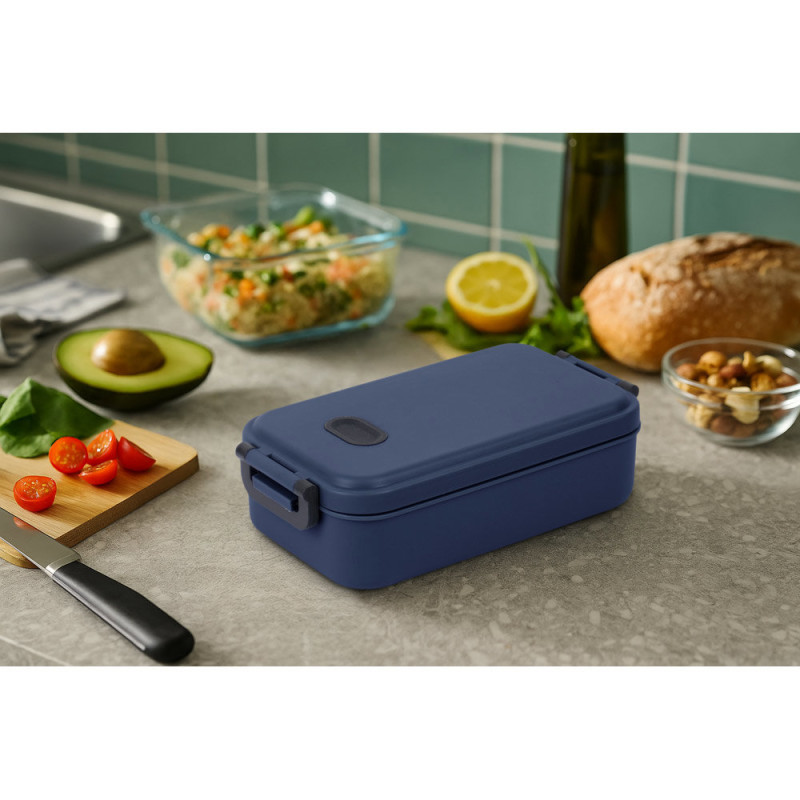 Airtight PP box for organising your meals. Microwave-safe lid. It can also be washed in the dishwasher. Capacity up to 900 mL. 213 x 117 x 60 mm