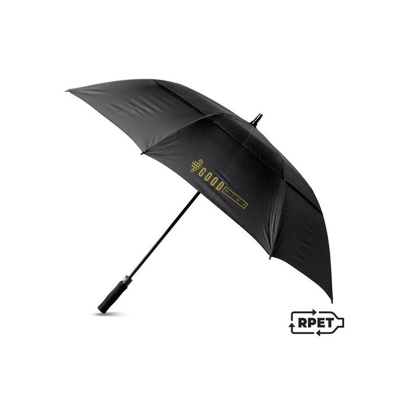 Face rainy days with style and functionality with our double-panel RPET rain hat with golf handle! This is the perfect accessory to keep you dry when the weather decides to play tricks.