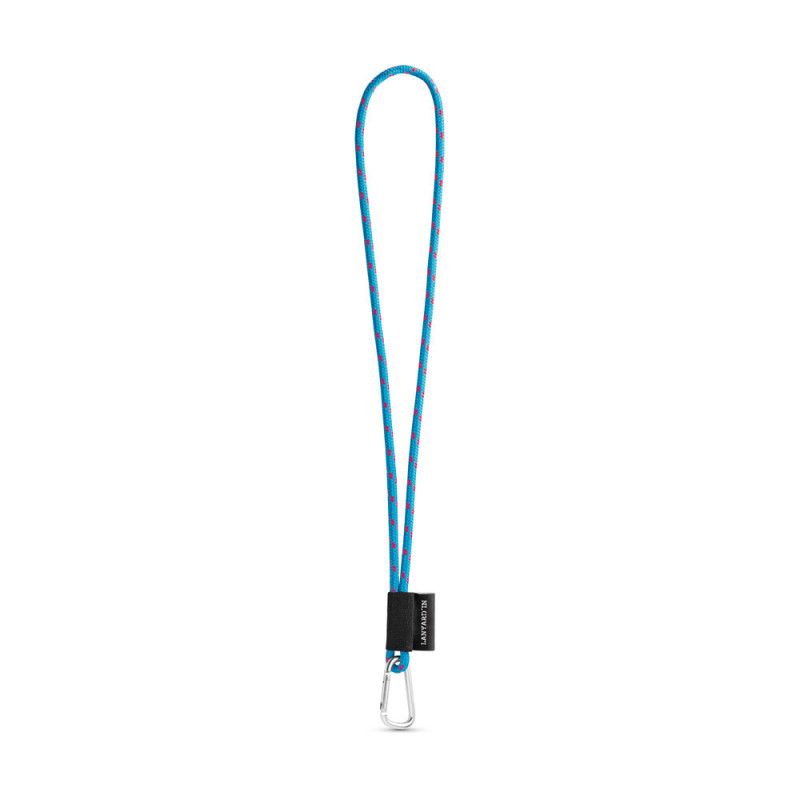 Custom Lanyard long NAUTIC in polyamide with 12 standard colours available for customisation. Includes the following accessories and extras: black coloured elastic, 43 x 22 mm sublimation label, 55 mm metal hook. ø7 x 470 mm