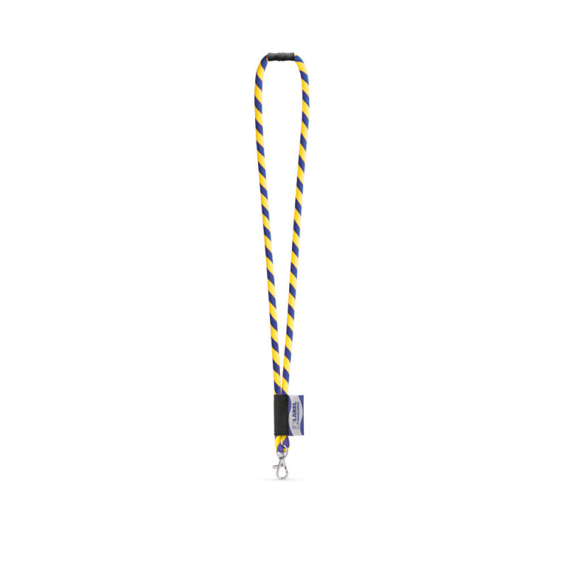 Customized polyamide lanyard. Available in 24 standard colors for customization. This Long Tube Lanyard includes the following accessories and extras: black elastic, 43 x 22 mm sublimation label, standard carabiner, and ø6 mm safety clasp. Made in Europe. Prices include sublimation customization on the label. ø7 x 470 mm