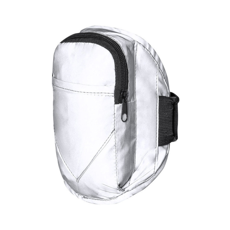 Sports armband in 210T polyester. Made using highly reflective fabric, based on the principle of retro-reflection of light, a property of nighttime visibility that consists of the refraction of light back to its source of origin. Zippered main pocket and front pocket with velcro closure. With adjustable, elastic strap and water resistant.