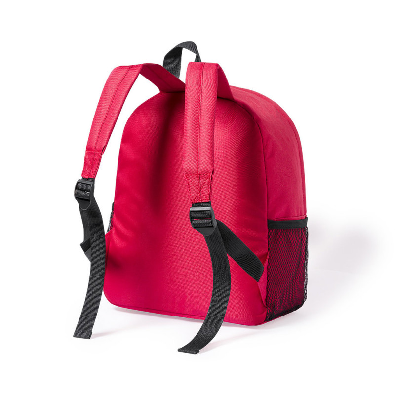Kids backpack in durable 600D RPET, made from recycled plastic, to encourage the reuse of plastic waste and help the sustainability of the planet. With zip closure and pocket on front, easy-open pullers and side mesh pockets. Padded and adjustable back and shoulder straps. RPET emblem on label and available in a wide range of colours.