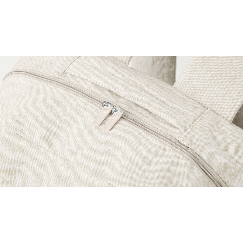 Backpack made of GRS recycled cotton 300g/m2. Features a main compartment and a front pocket with zip closure. Including carry handle and matching adjustable shoulder straps, padded for comfort. Available in a variety of colours, with recycled cotton label.GRS (Global Recycled Standard) certification available, guaranteeing the recycled origin of the material used to manufacture the product. Available in a wide range of colors.