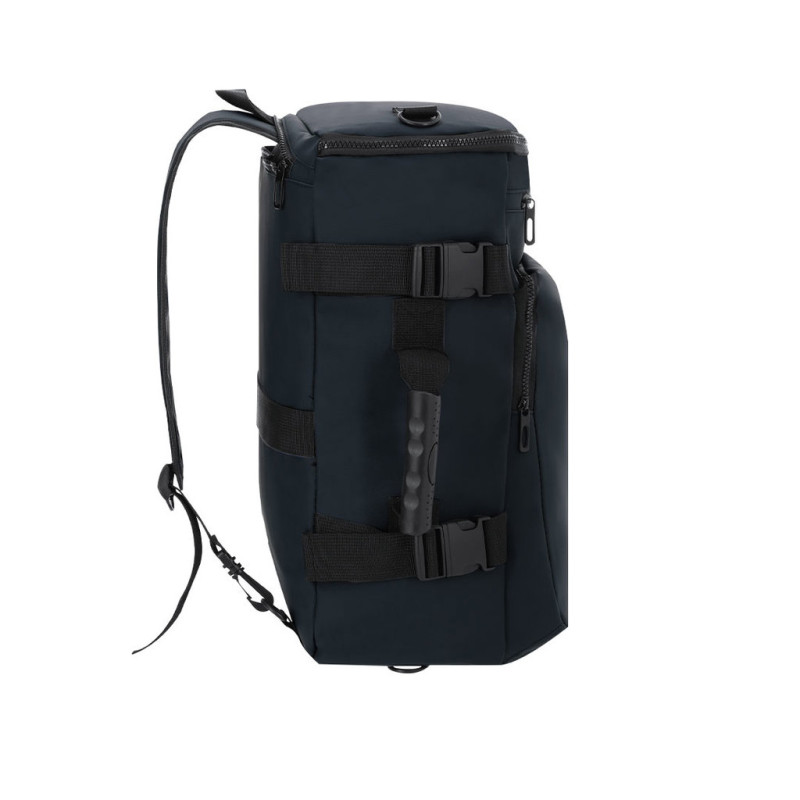 Document holder backpack made from PU. Features an urban design that includes a central pocket with zipper closure and double pull. With padded interior for laptops up to 15 inches, additional interior pocket with zipper closure, and two pockets on the front. Its shoulder straps and back are padded and adjustable for added comfort. Includes side straps allowing for thickness adjustment to make it compact. Offers three modes of carrying: as a backpack, thanks to the padded shoulder straps and compartment for storing them; as a document holder, thanks to its padded transport handle; and as a messenger bag due to its long adjustable strap.