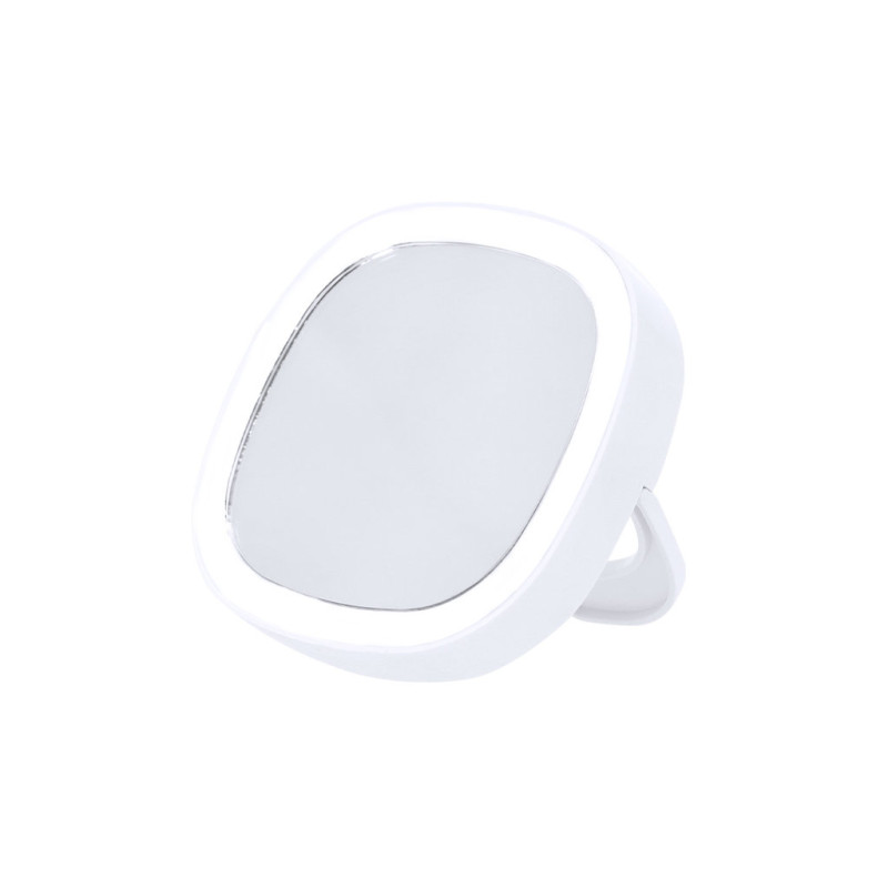 Folding mirror with light. With 2 adjustable light settings and rear support. With 1x magnification. Includes ON/OFF button on the front. Battery powered – 3xAAA not included. Its compact and foldable design makes it easy to carry.