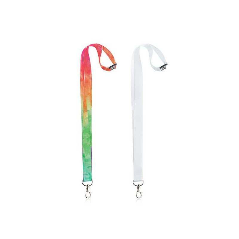 Sublimated Impacto Direct lanyard, 20mm wide, with carabiner and safety lock. The perfect accessory for all your events! We present the lanyard personalised on both sides, guaranteeing a unique visual impact. Made using sublimation technology, this lanyard combines style and functionality. The integrated carabiner offers practicality and safety, making it the ideal choice for highlighting your brand or message. Whether at conferences, trade fairs or special occasions, the Impacto Direct sublimated lanyard is the ultimate expression of personalisation and quality.