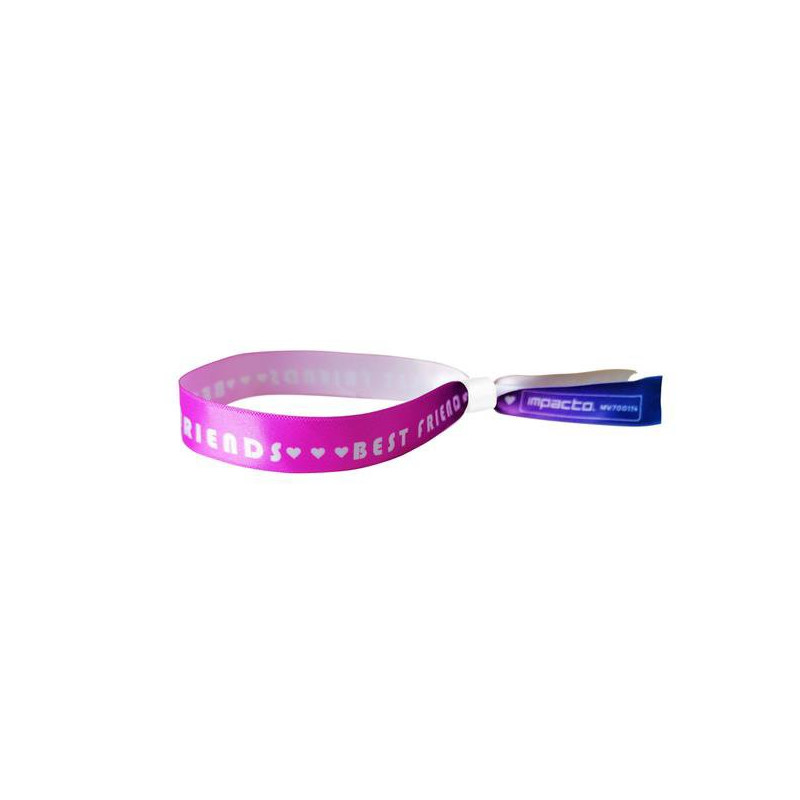 15mm Impact Direct soft polyester wristband with clasp. The perfect choice for your music events and much more! Introducing the high-quality personalised soft polyester wristband, designed to add a special touch to your occasions. Customisable on one side, this wristband is a blank canvas to highlight your brand, logo or message in a unique way. The clasp ensures comfort throughout the event. Whether for festivals, concerts or corporate events, the Impacto Direct satin wristband is the ideal choice for expressing your style and creating lasting memories.