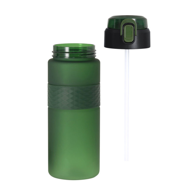 730ml capacity bottle, made of resistant RPET and in a matte translucent finish with silicone accessory. With push system lid, straw nozzle system, safety lock and comfortable carrying handle. BPA free.