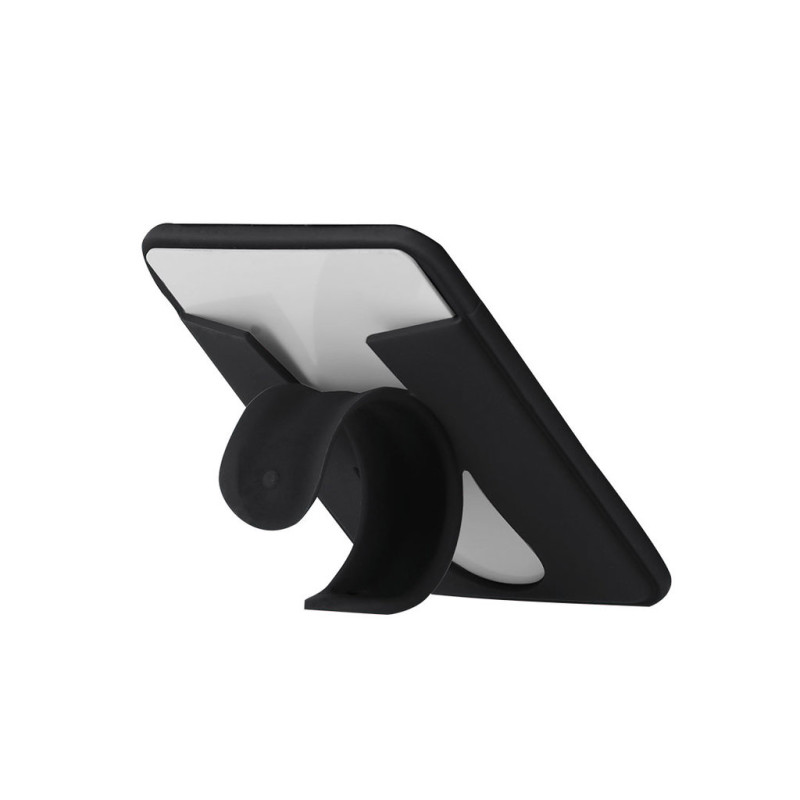 Magnetic card holder made of silicone. Ideal for viewing your smartphone in any position thanks to the multi-position design of its foldable handles. With card compartment.