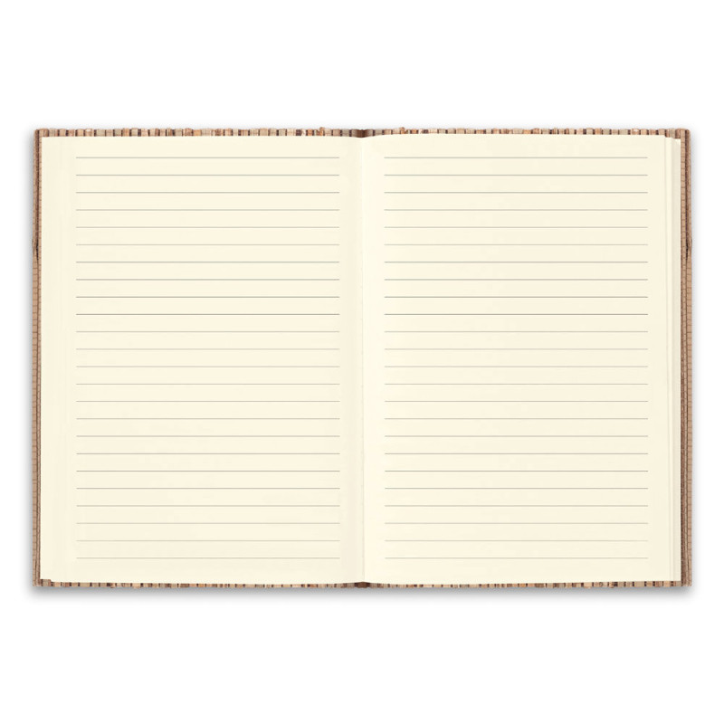 A5 notepad with hardcover made from natural straw. Includes a metal plaque that can be customised and added to the cover. This notepad has 192 lined ivory pages (70 g/m²). Supplied in a kraft paper gift box. As the product is made from natural materials, the colour and the printing result may vary between products. 150 x 210 mm | Plate: 30 x 15 mm