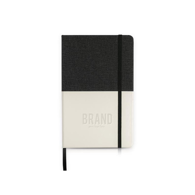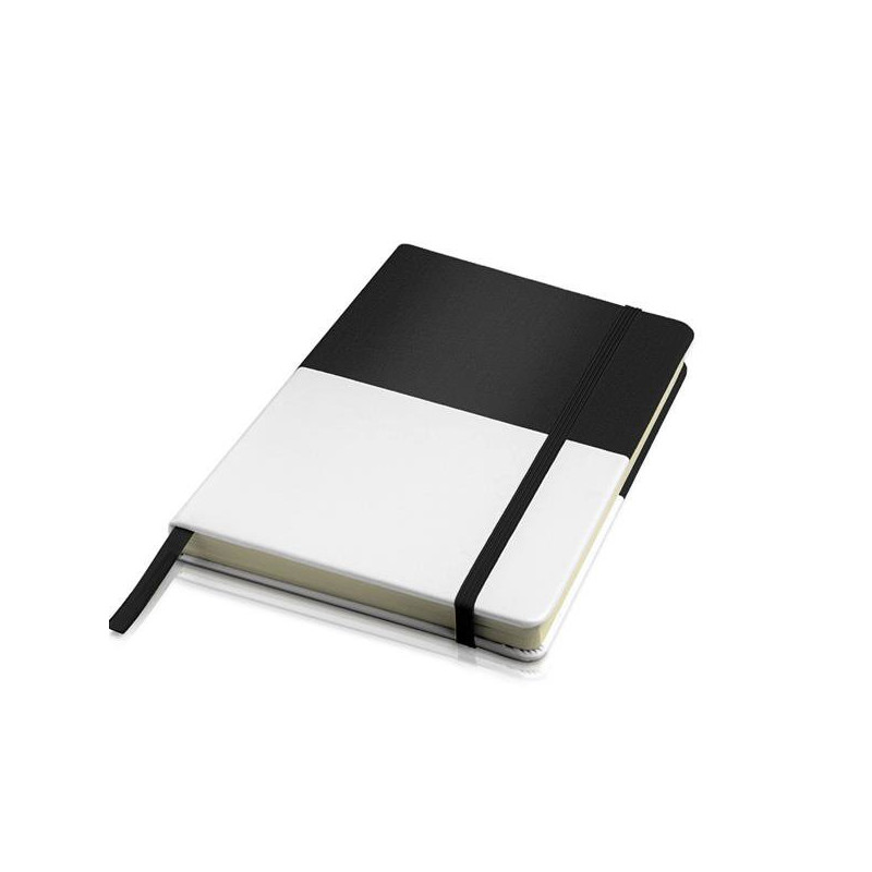 Notepad in PU. A5 size, 160 plain pages of 80g, sourced from responsibly managed forests. Cardboard cover lined with thermal PU and regular colored PU, with colored elastic and ribbon. A modern block that stands out for its difference, thanks to the harmonic combination of colored PU and white PU. Promote your brand in a unique way. Take it with you everywhere.
