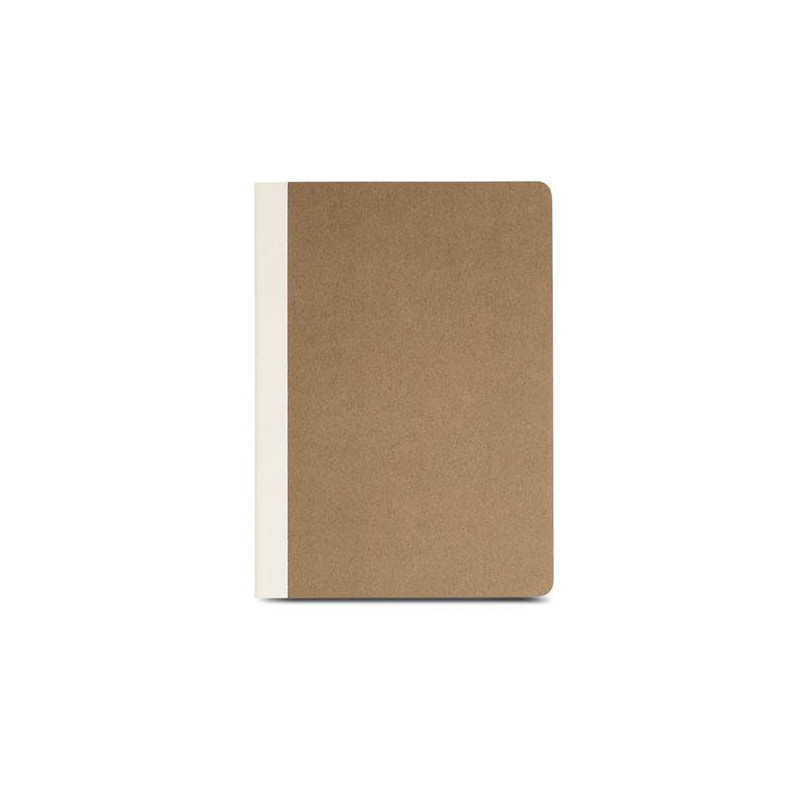 A5 Notebook with Natural Fibre Cardboard Cover. The interior contains 128 pages of plain white paper sourced from responsibly managed forests, ensuring quality and environmental responsibility.This notebook stands out for its cover, crafted from repurposed natural fibres sourced from a variety of origins, such as different fruits, making it a more eco-friendly option compared to conventional notebooks. The spine, made of cotton, provides an elegant contrast with the cover´s tone, adding a touch of sophistication.