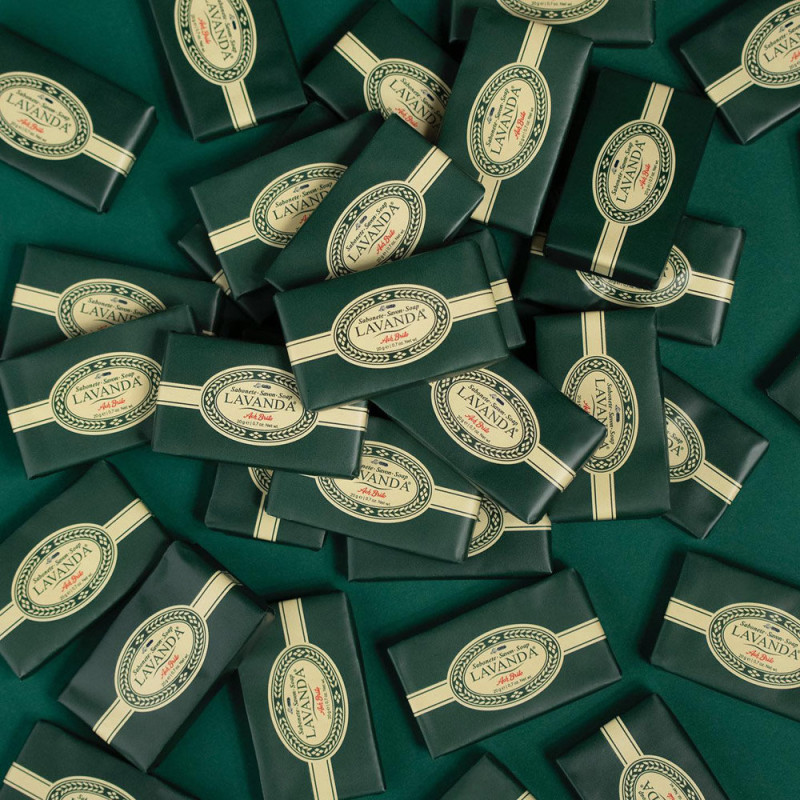 Soap made with a vegetable soap base and Lavender fragrance, with a soft texture that leaves the skin perfumed. Its small size is ideal for carrying in your gym bag or for travelling. Traditionally produced in Portugal. Capacity 20 g. Classic packaging that retains the original design, with its green background decorated with small graphics representing lavender flowers. 59 x 34 x 10 mm