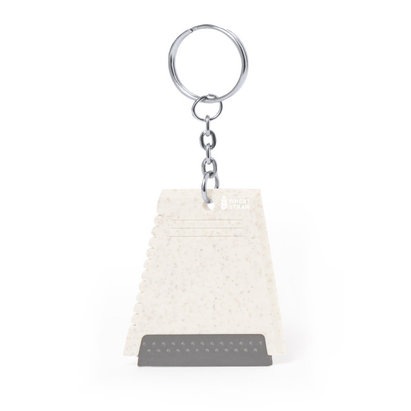 Practical keyring with ice scraper, made of wheat straw. Equipped with saw teeth for tackling the toughest ice and including a cleaning accessory. Wheat straw logo on the top corner and presented individually in a kraft paper bag.Wheat straw promotes the use of natural raw materials, thus reducing pollutant emissions.
