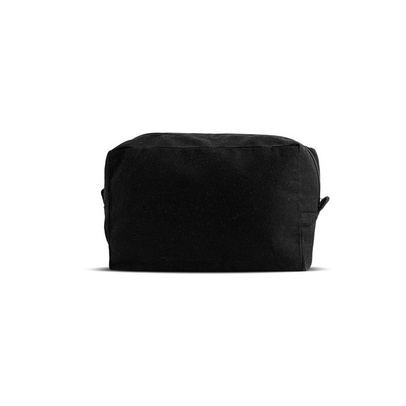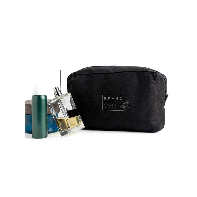 Canvas toiletry bag. Discover the practicality and style of our promotional toiletry bag, made from high-quality canvas and OEKO-TEX® STANDARD 100 certified. Available in an elegant black color, this toiletry bag combines durability and sophistication. With dimensions of 23 cm x 14 cm x 8 cm, it is perfect for organizing your daily essentials efficiently and charmingly. Ideal for gifting to your clients and partners, highlighting your brand's environmental responsibility and good taste.