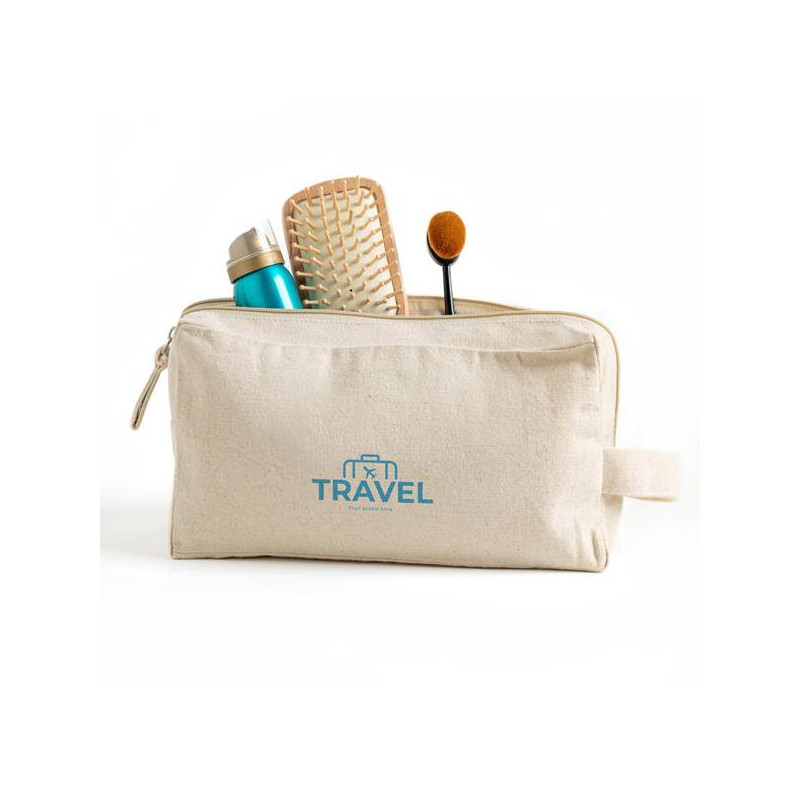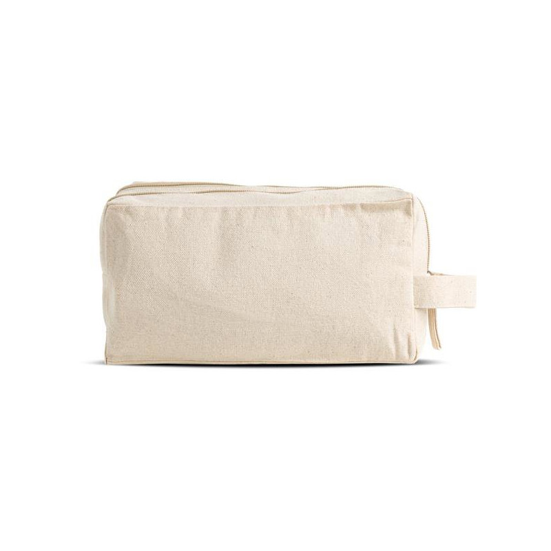 Canvas toiletry bag with double compartment. Introducing the promotional double compartment toiletry bag, perfect for organizing your personal items with style and convenience. Made from high-quality canvas and OEKO-TEX® STANDARD 100 certified, it ensures a sustainable and safe product for daily use. Available in natural color, the classic and versatile design fits any occasion. With dimensions of 25 x 12 x 10 cm, it offers ample space for your essential belongings, making it the ideal companion for travel or everyday use.