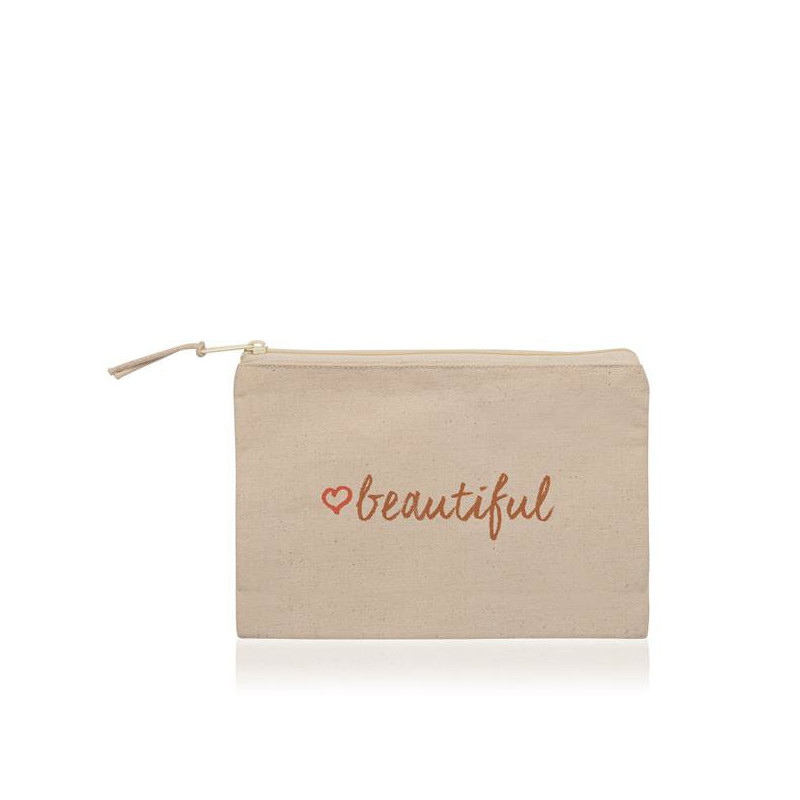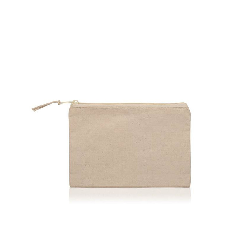 Bag made of 100% cotton (310 g/m²), durable with a natural feel. It features a nylon zipper and an ideal size for use as a cosmetic bag, pouch, or organizer. It offers a large customization area, perfect for branding or promotional purposes.This product is OEKO-TEX® STANDARD 100 certified, ensuring it contains no harmful substances and is safe for skin contact.