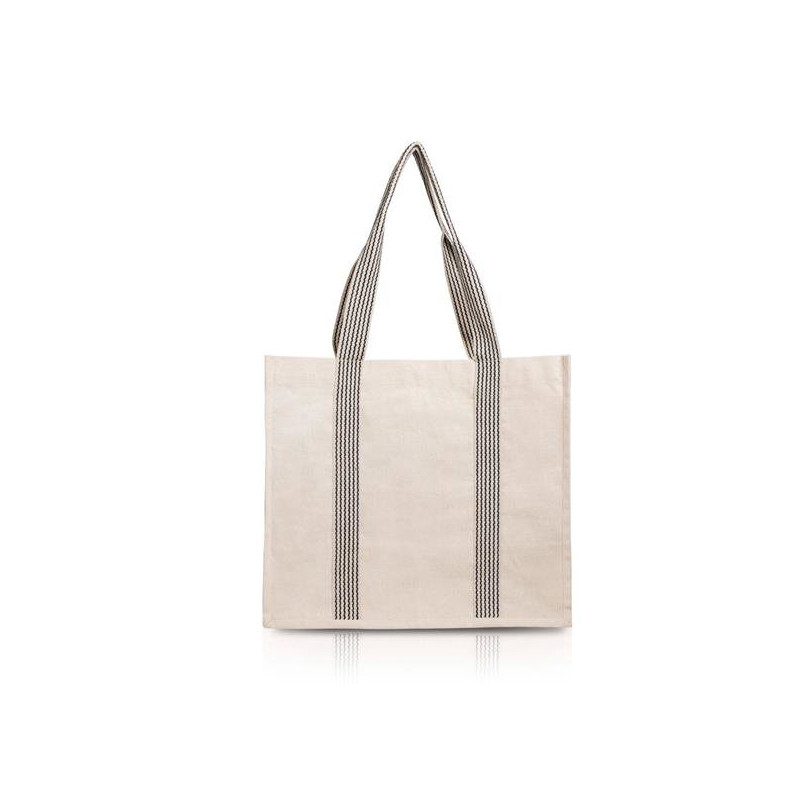 Canvas bag with bellows and magnetic closure.This natural colored (310gms) canvas bag with contrasting cotton handles can be used for everyday use, beach shopping, picnics, etc.It has a magnetic closure inside and a zipper pocket, which allows you to carry your objects with greater security.It can only be dry cleaned.