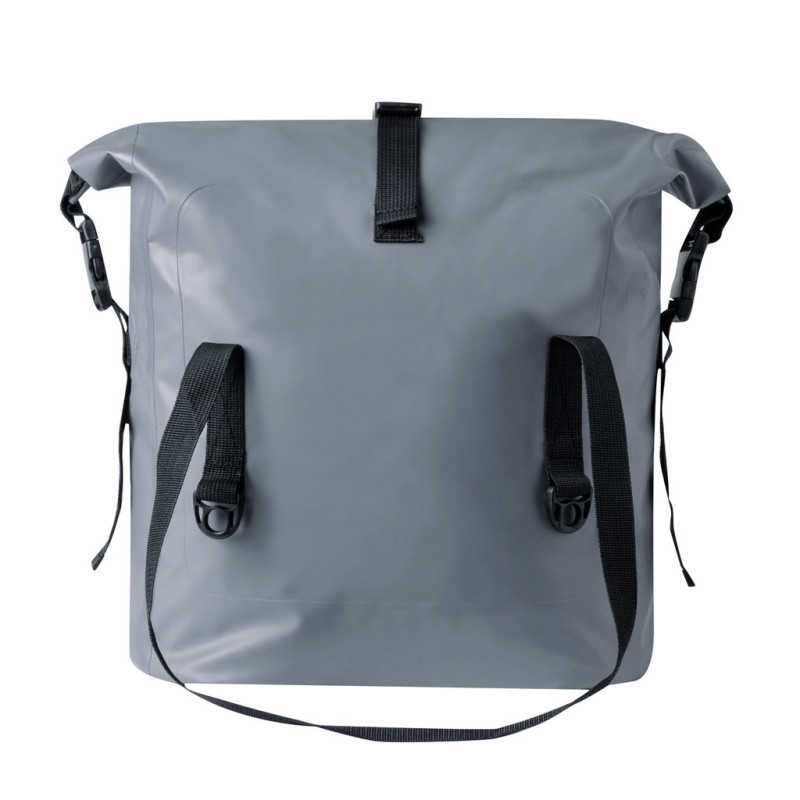 Waterproof bag with 25L capacity, made of durable PVC. Main compartment with triple buckle closure, with handles for comfortable carrying. In stylish grey color with black accents, and presented in an individual recycled bag.