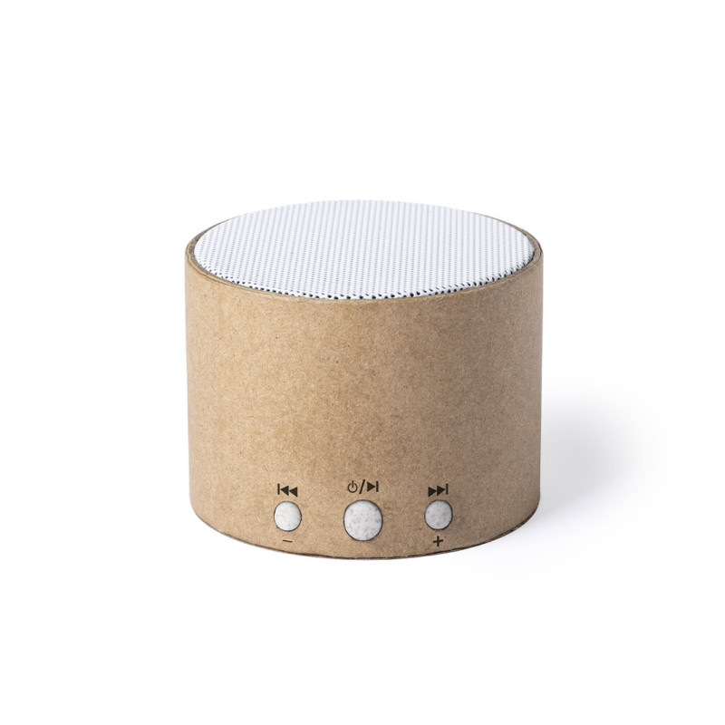 Compact speaker in nature line and Bluetooth® 5.0 connection. Made from recycled cardboard, contributing to the conservation of forests and considerably reducing the carbon footprint. With control buttons in wheat straw, offering 3W of power and compatible with iOS and Android. Including micro USB charging cable and presented inside an attractive eco-design box, with user manual in English and Spanish.