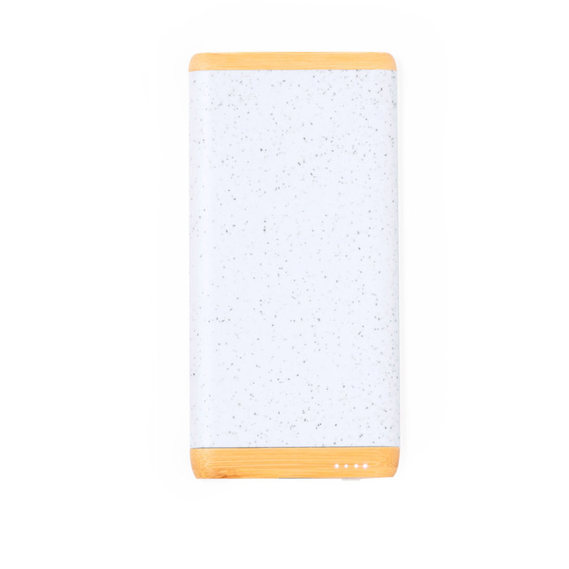 External auxiliary battery made in a combination of bamboo and wheat straw. With 5,000 mAh charging capacity and Type C input/output + USB output connections. With push button and LED charge status indicator, presented in an individual box of eco design in kraft cardboard.Materials such as bamboo encourage the use of natural raw materials, reducing pollutant emissions. It comes from a highly resistant and versatile plant with rapid growth and regeneration, making of it an excellent alternative to traditional wood.Wheat straw promotes the use of natural raw materials, thus reducing pollutant emissions.The capacities shown in all our external auxiliary batteries are real, all of them incorporating non-recycled, grade A batteries, with a service life of at least 500 charging cycles, and complying with CE regulations. In addition, they are manufactured according RoHS standards, and in compliance with the following safety requirements: Power bank overcharge protection system. Complete discharge protection system, which increases the durability of the power bank. Blocking system to prevent short circuits. Constant charging transfer system, in accordance with the capacity of the target device.