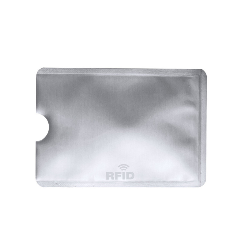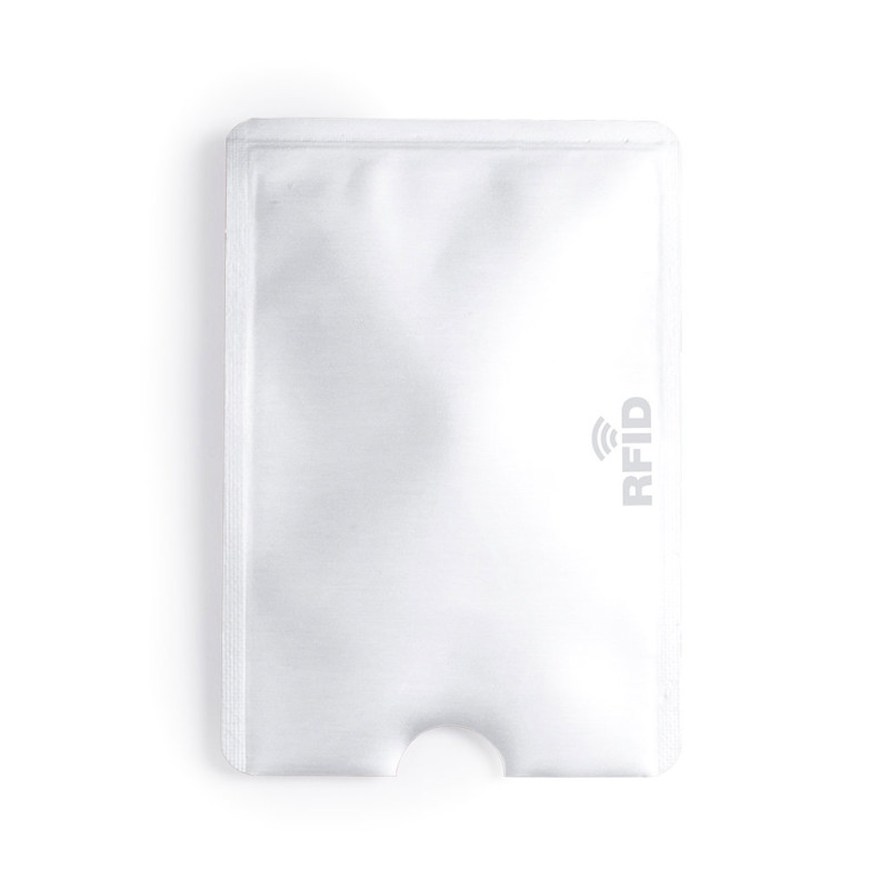 Card holder with RFID (Radio Frequency Identification) security technology that keeps card data safe. Resistant, smooth aluminum body in lightweight colors, with notch for easy access to the card.