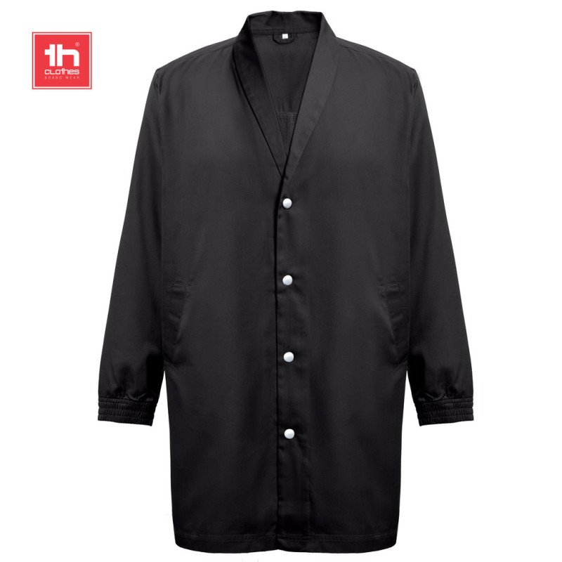 Corte elegante e moderno com bolsos laterais • 2 machos nas costas do artigo para permitir uma maior liberdade de movimentos • O abotoamento é feito através de molas de pressão • Gola estilizada • Punhos com elástico • Presilha para pendurar no interior da gola