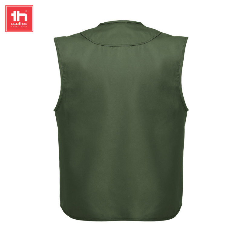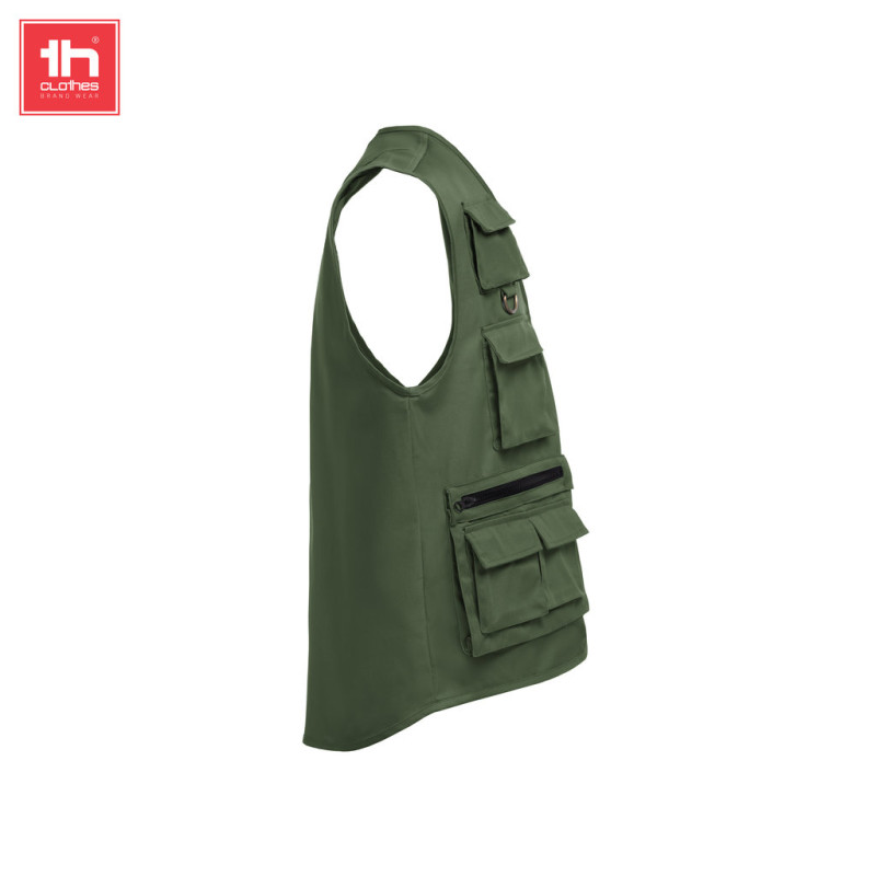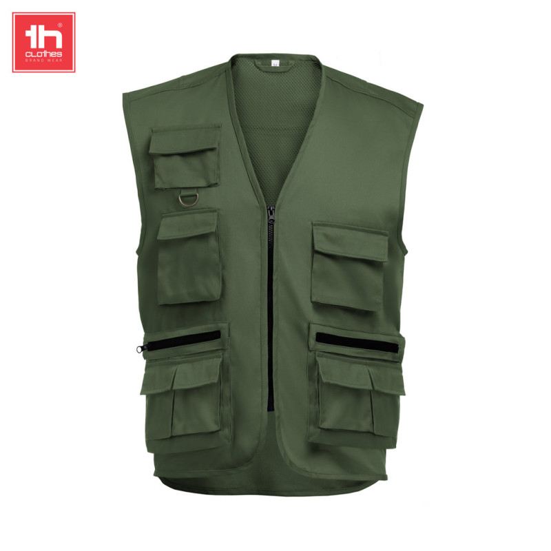 9 bolsos • 3 bolsos no peito com aba e velcro + 1 fivela • 2 bolsos inferiores com fecho e 4 bolsos pequenos com aba e velcro • Tratamento repelente à água • Forro em rede de nylon • Reforço em meia lua na parte de trás da gola • Presilha para pendurar no interior da gola • Abertura da frente com fecho com cor em contraste