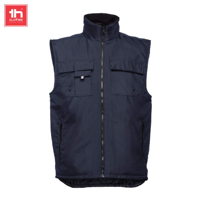 Gola forrada a malha polar • 6 bolsos: 5 frontais incluindo 2 com fecho inserido e 1 para telemóvel • 1 bolso interior • Acabamento refletor na zona da frente • Presilha para pendurar no interior da gola • Elástico lateral para melhor ajuste ao corpo • Acesso com fecho na parte inferior das costas para facilitar a personalização • Abertura com fecho YKK