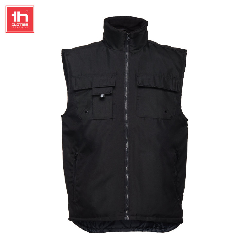 Gola forrada a malha polar • 6 bolsos: 5 frontais incluindo 2 com fecho inserido e 1 para telemóvel • 1 bolso interior • Acabamento refletor na zona da frente • Presilha para pendurar no interior da gola • Elástico lateral para melhor ajuste ao corpo • Acesso com fecho na parte inferior das costas para facilitar a personalização • Abertura com fecho YKK