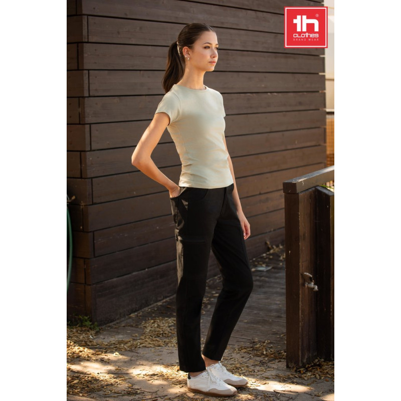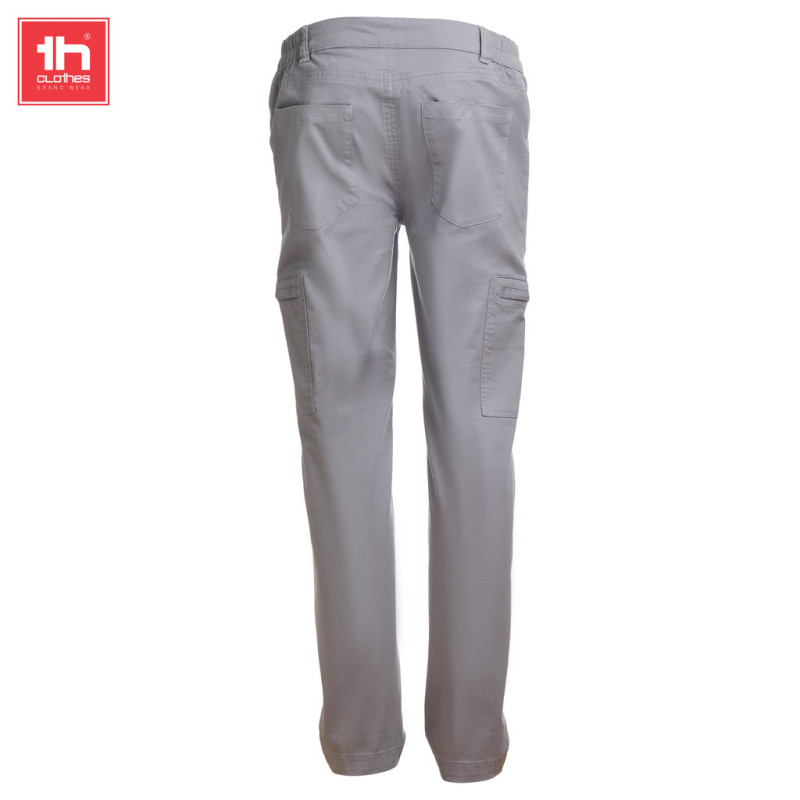 2 bolsos laterais com fecho discreto • Elástico nas laterais da cintura • Dois bolsos frontais e dois traseiros • Presilhas para cinto