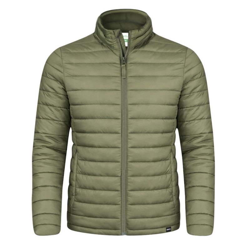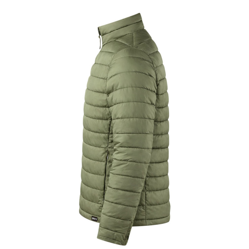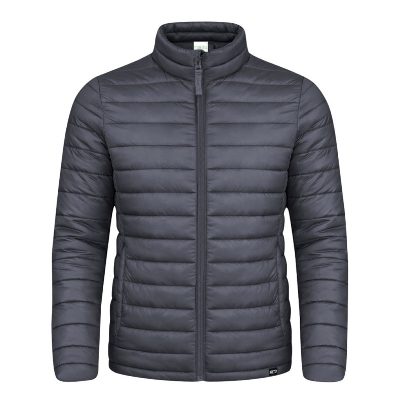 Unisex jacket in warm and soft material 100% polyester RPET, made from recycled plastic to encourage the reuse of plastic waste and contribute to the sustainability of the planet. In extra light feather effect material, waterproof and windproof, with interior padding. Zippered neck with flap and puller strap large zippered side pockets. RPET label and available in a wide range of colours. Sizes S, M, L, XL, XXL.