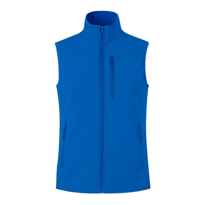 Waterproof, windproof and breathable vest in a combination of RPET materials, made from recycled plastic, to promote the reuse of plastic waste and contribute to the sustainability of the planet: 300g/m2 soft shell and elastane outside with 100% polyester microfleece inside. Eco emblem on the bottom hem of the garment. With zipper closure and including chest and side pockets with invisible zip closure and matching pullers. Available in a wide range of colours and in sizes S, M, L, XL, XXL.