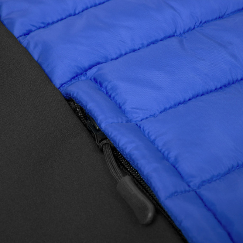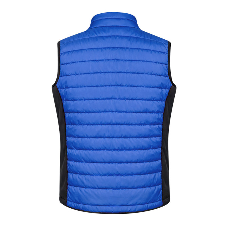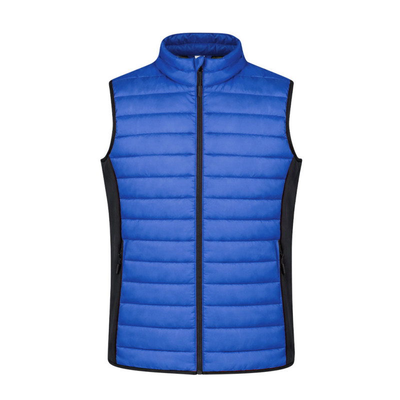 Wind and water resistant vest in a warm combination of soft shell and polyester materials, with padded interior. Elegant construction in a wide range of colours, with black details and sides. Zip fastening and side zip pockets with pullers for easy opening. Available in sizes S, M, L, XL, XXL.