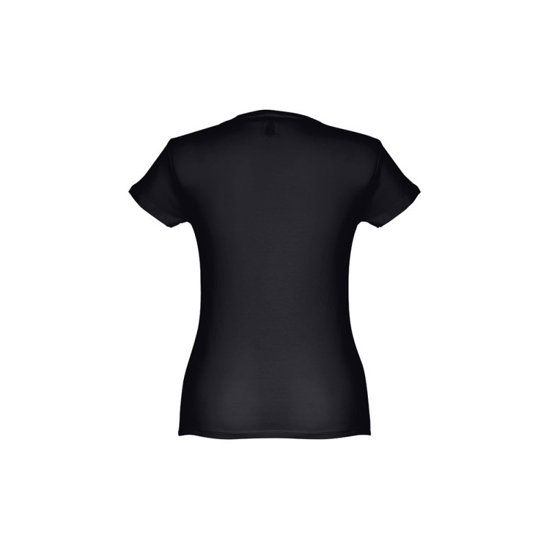 Women's fitted T-shirt in 100% cotton jersey (150 g/m²) with carded cotton yarn (colour 183: 90% cotton/10% viscose). Features a thin double jersey collar reinforced by satin bias tape. Cut and sewn garment with double stitched sleeve and hemline. Size: 3XL