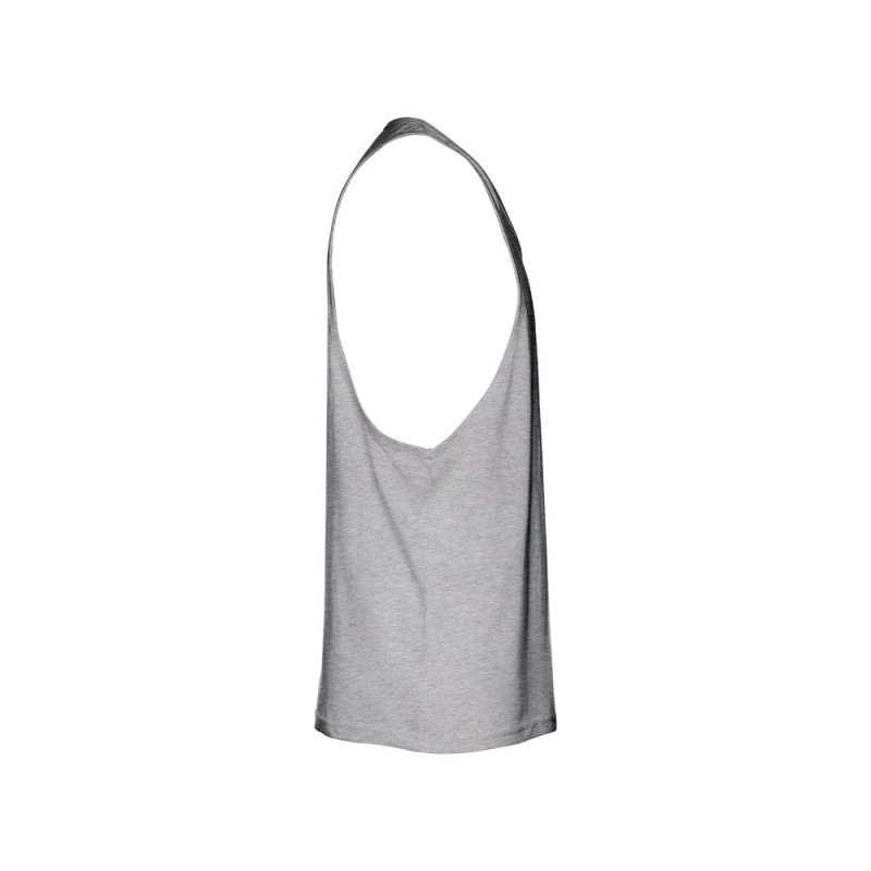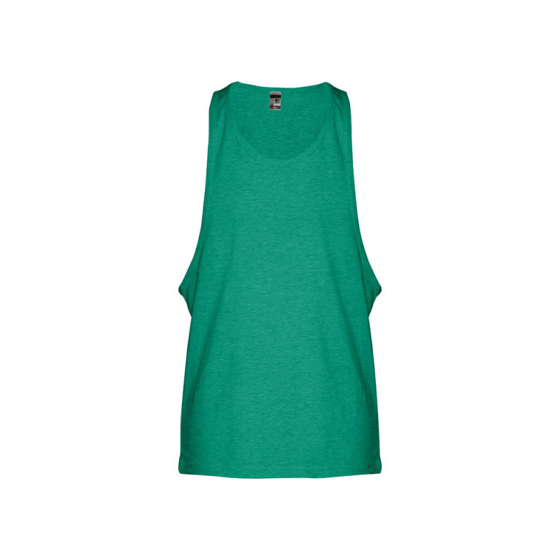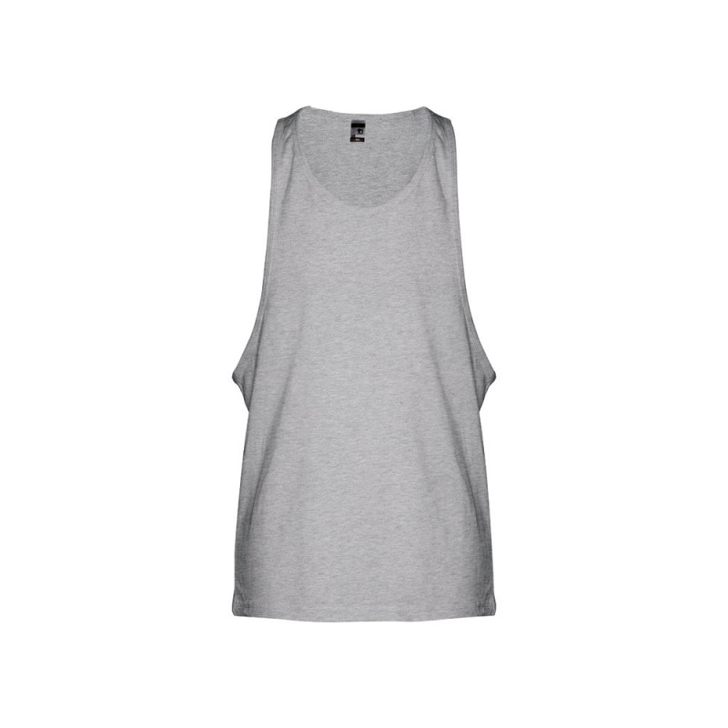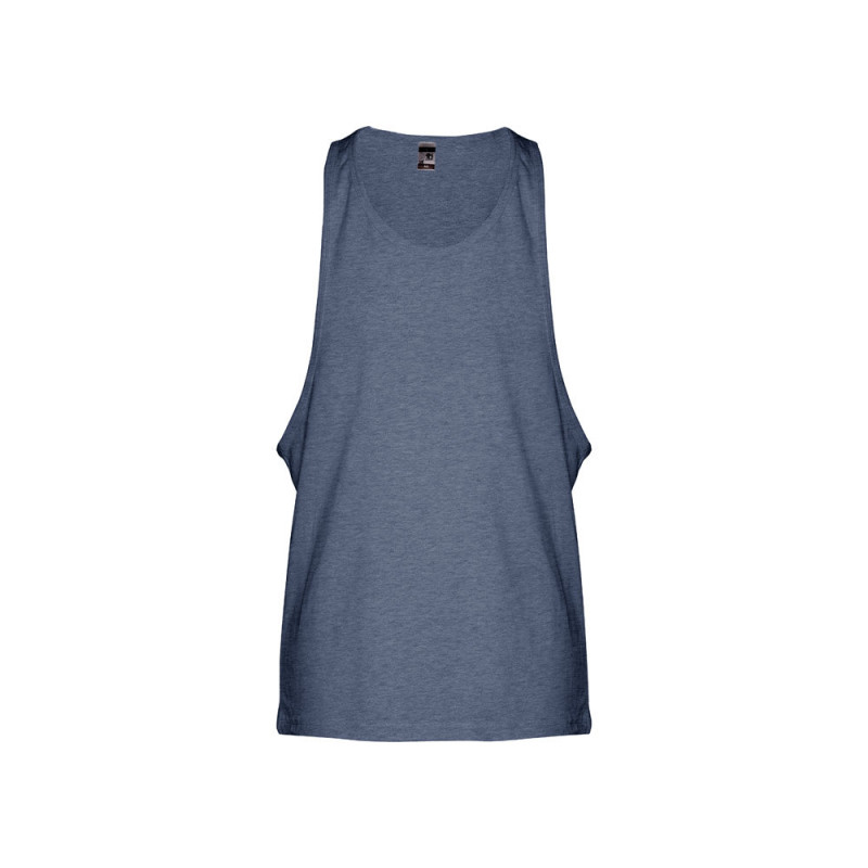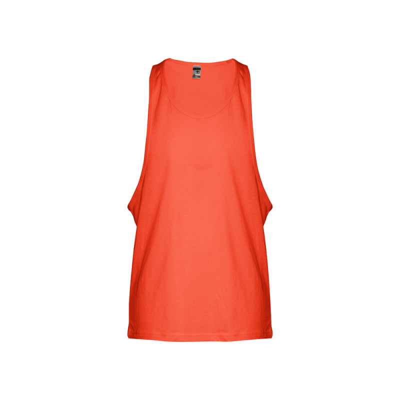 100% cotton men's sleeveless jersey (140 g/m²) with carded cotton yarn (colours: 194, 195 and 199: 60% cotton/40% polyester and colour 183: 90% cotton/10% viscose). Wide armholes and round collar, with bias tape on the armholes and neckline. Piece cut and sewn with double seam at the hemline Sizes: XS, S, M, L, XL, XXL