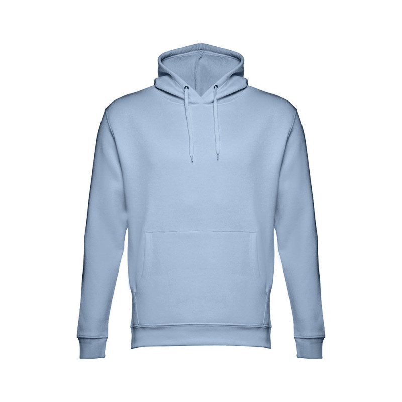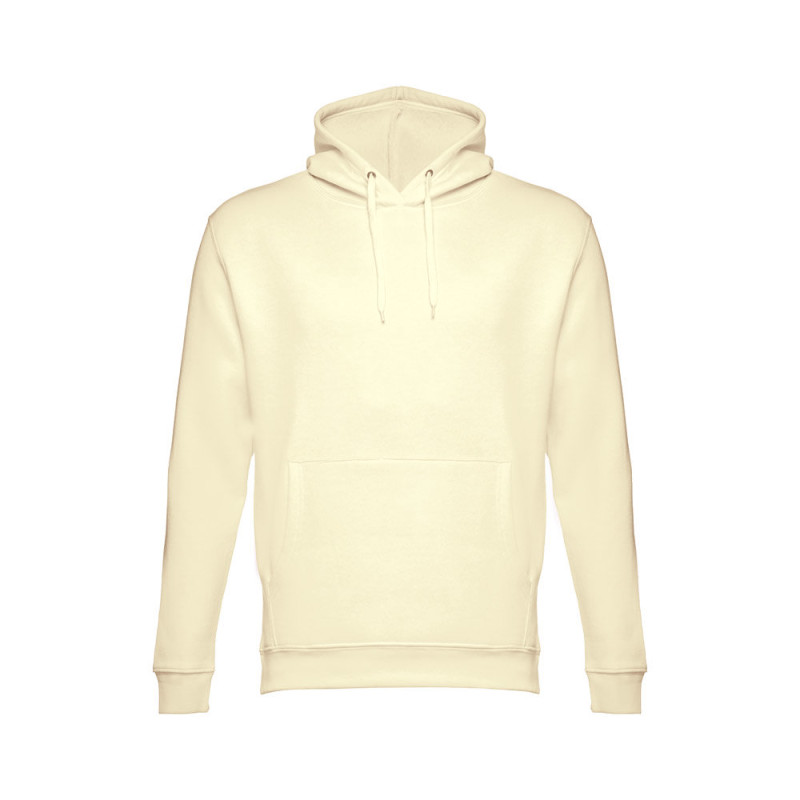 Hooded sweatshirt (unisex) in 50% cotton and 50% polyester (320 g/m²) with carded interior. The hood includes eyelets and fastening cord in matching colour. Sweatshirt with marsupial pocket and 1x1 Rib on the cuffs and waistband. Sizes: XS, S, M, L, XL, XXL