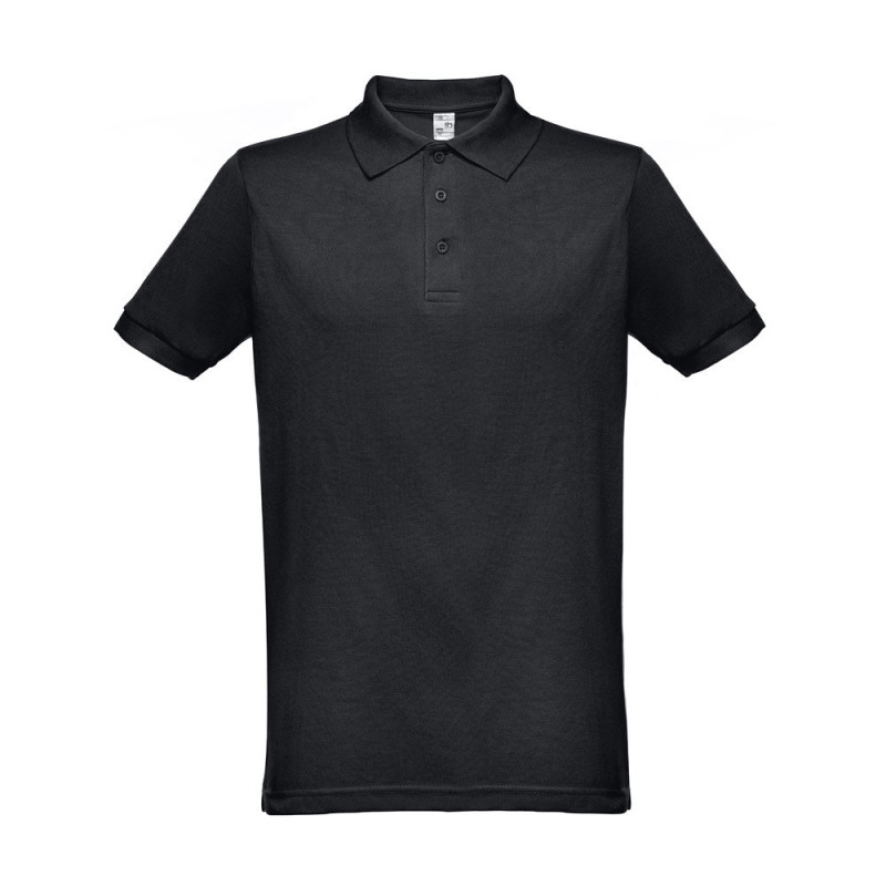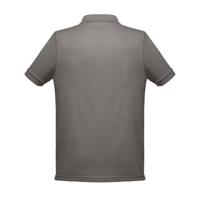 Short sleeve polo shirt for men in piqué mesh 35% carded cotton and 65% polyester (200 g/m²). Colour 183: 85% cotton/15% viscose. Regular cut polo with rib collar and sleeves, the collar being reinforced with piqué knit ribbon. Features a reinforced collar with 3 matching colour buttons (extra button inserted in the inner seam). Piece cut and sewn. Sizes: XS, S, M, L, XL, XXL