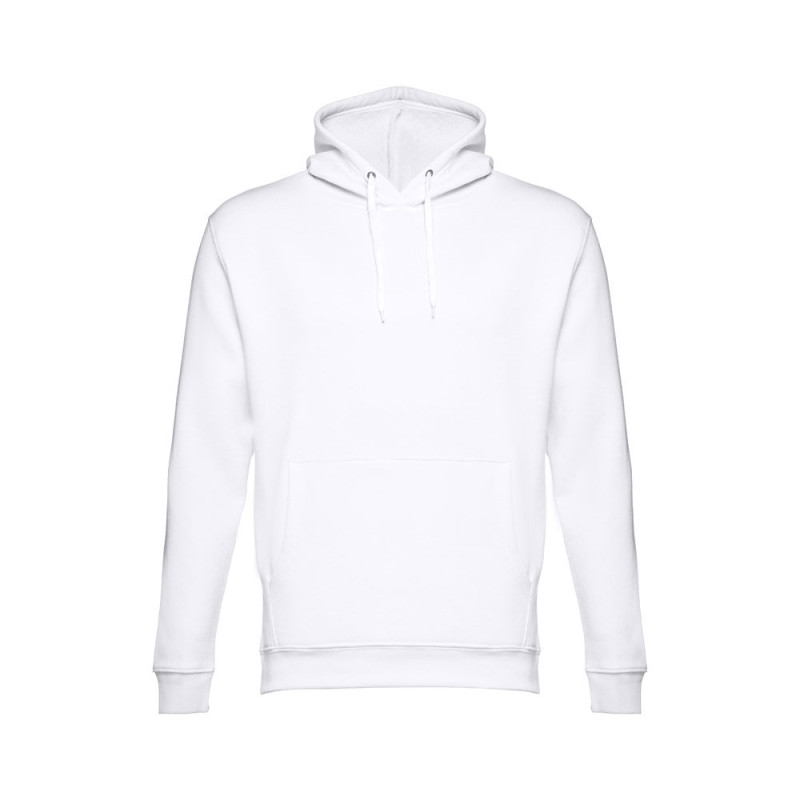 Hooded sweatshirt (unisex) in 50% cotton and 50% polyester (320 g/m²) with carded interior. The hood includes eyelets and fastening cord in matching colour. Sweatshirt with marsupial pocket and 1x1 Rib on the cuffs and waistband. Sizes: XS, S, M, L, XL, XXL