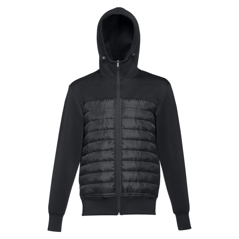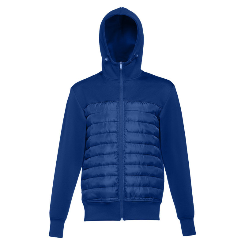 Hooded jacket for men in 300T taffeta (95% polyester and 5% elastane) (280 g/m²). Modern cut with flattering seam on the chest. Contains hood with stoppers and inner pockets. Easy customisation area above the chest. Sizes: S, M, L, XL, XXL